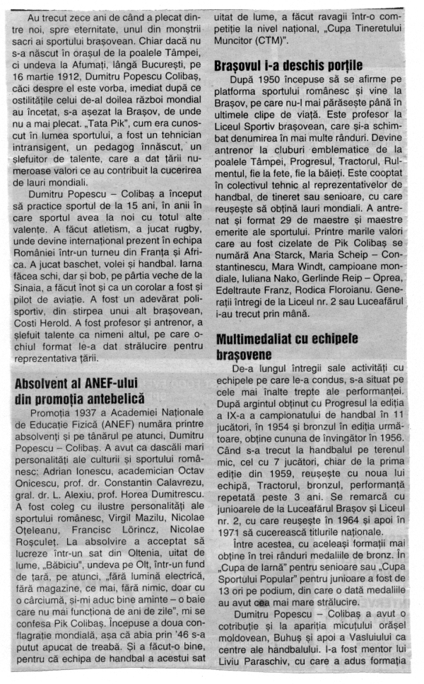 sportiv, din stirpea unui alt bragovean,
